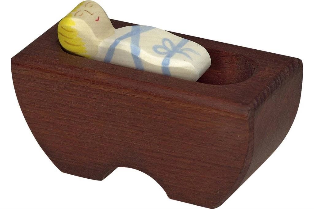 Houten figuren – kerstmis: kindje Jezus is een houten kerst speelfiguur van het merk Holztiger. Maak jouw kerststal compleet met kindje Jezus in zijn kribbe. Formaat: 11x3x8cm.