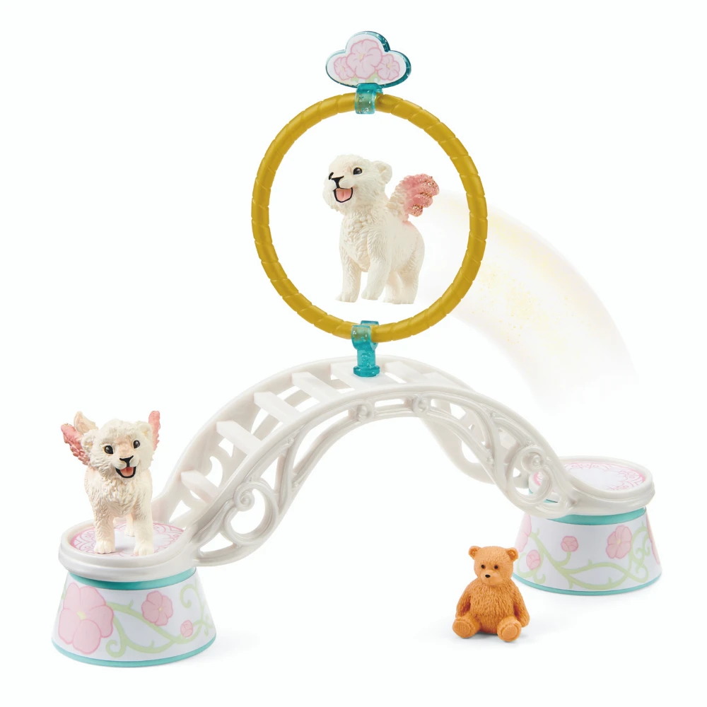 Nieuw in de Bayala collectie van het merk Schleich: set training voor gevleugelde baby leeuwen. Een set met 2 gevleugelde baby leeuwen en trainingsaccessoires.